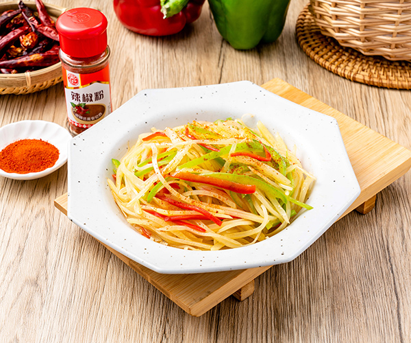 1將土豆、青椒洗凈切絲,備用。