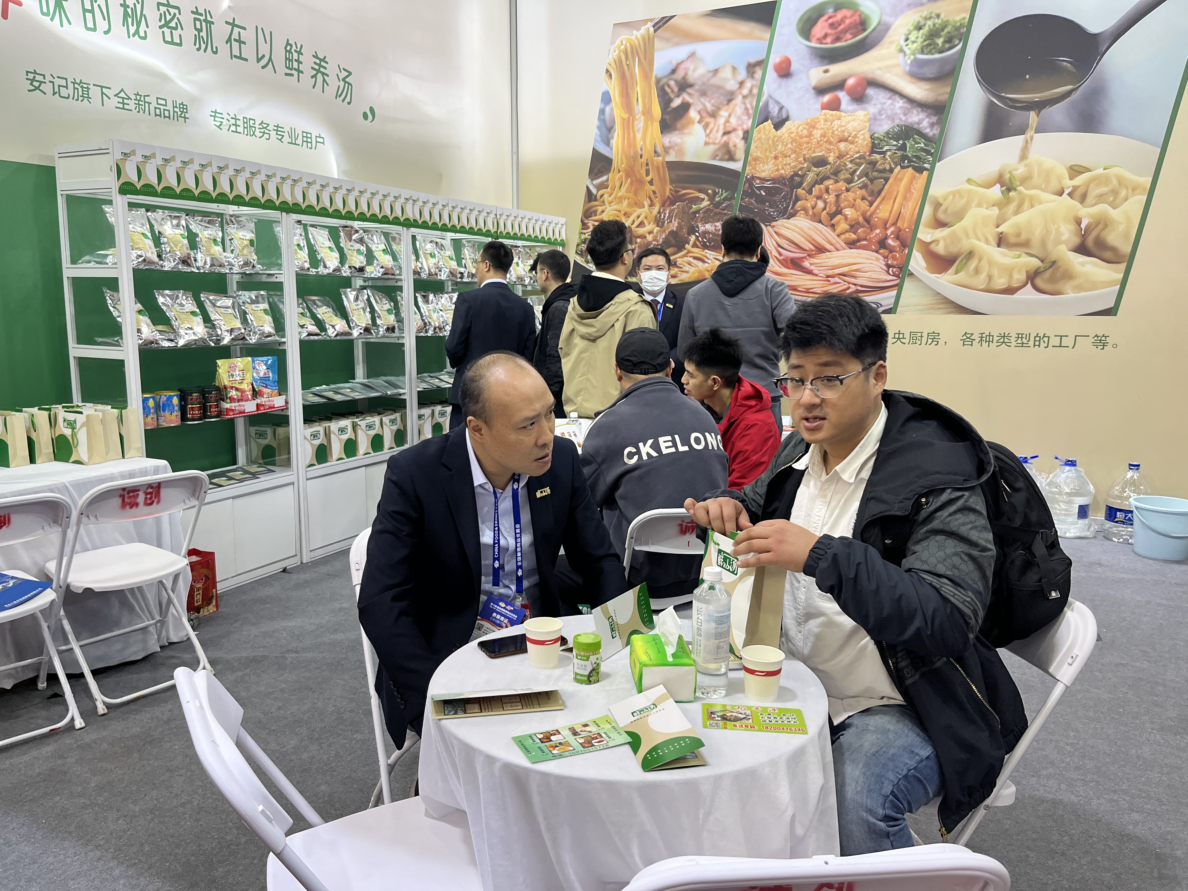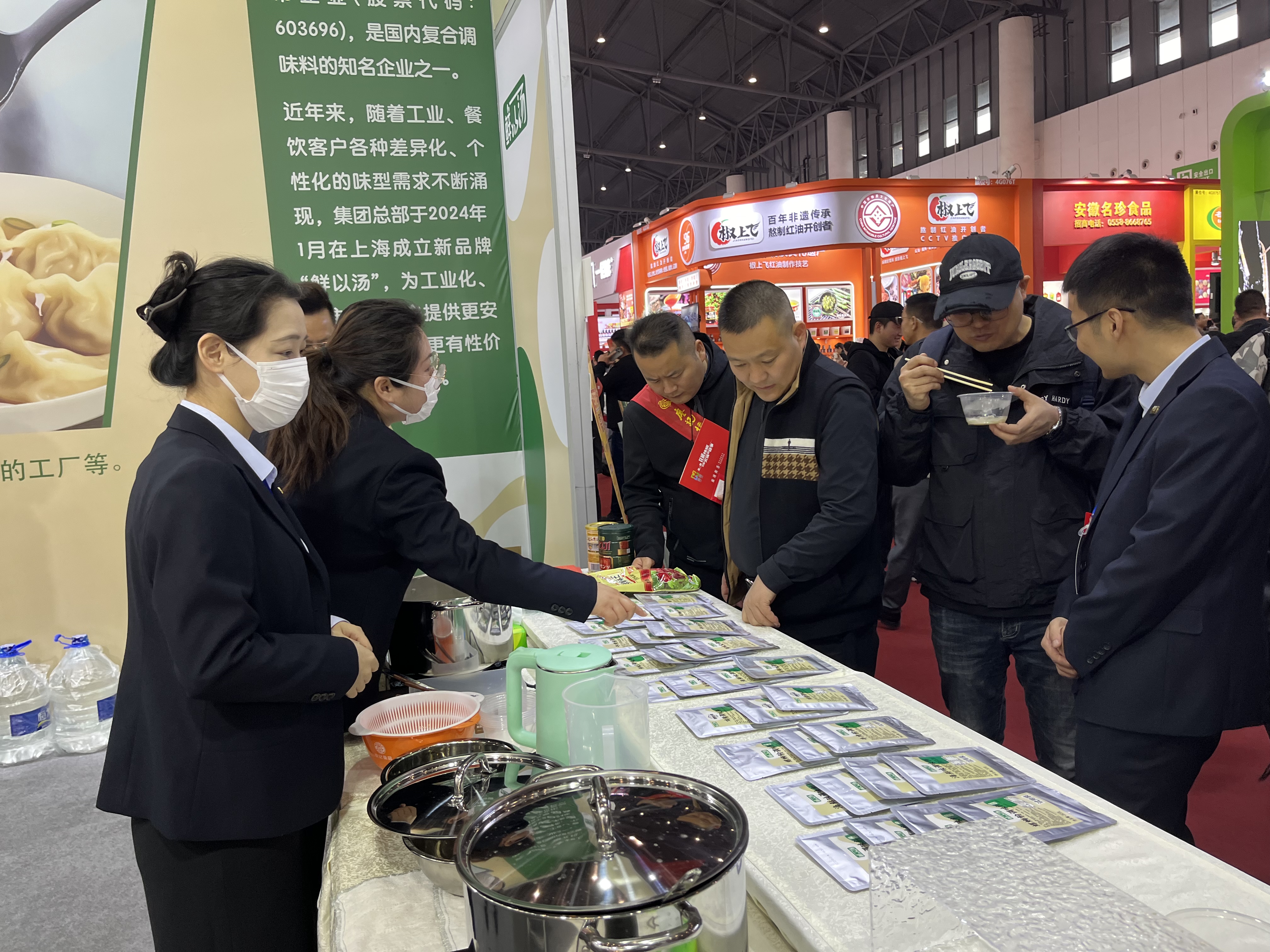 展會(huì)開(kāi)始,安記生物團(tuán)隊(duì)成員以最佳的精神風(fēng)貌迎接觀展客戶。試吃組井然有序地派發(fā)試吃品螺螄粉,讓觀展商以最直接的形式了解我們的產(chǎn)品、風(fēng)味;客戶招待組則負(fù)責(zé)介紹產(chǎn)品,溝通客戶需求,讓更多伙伴了解“鮮以湯“品牌,與意向客戶建立友好關(guān)系。