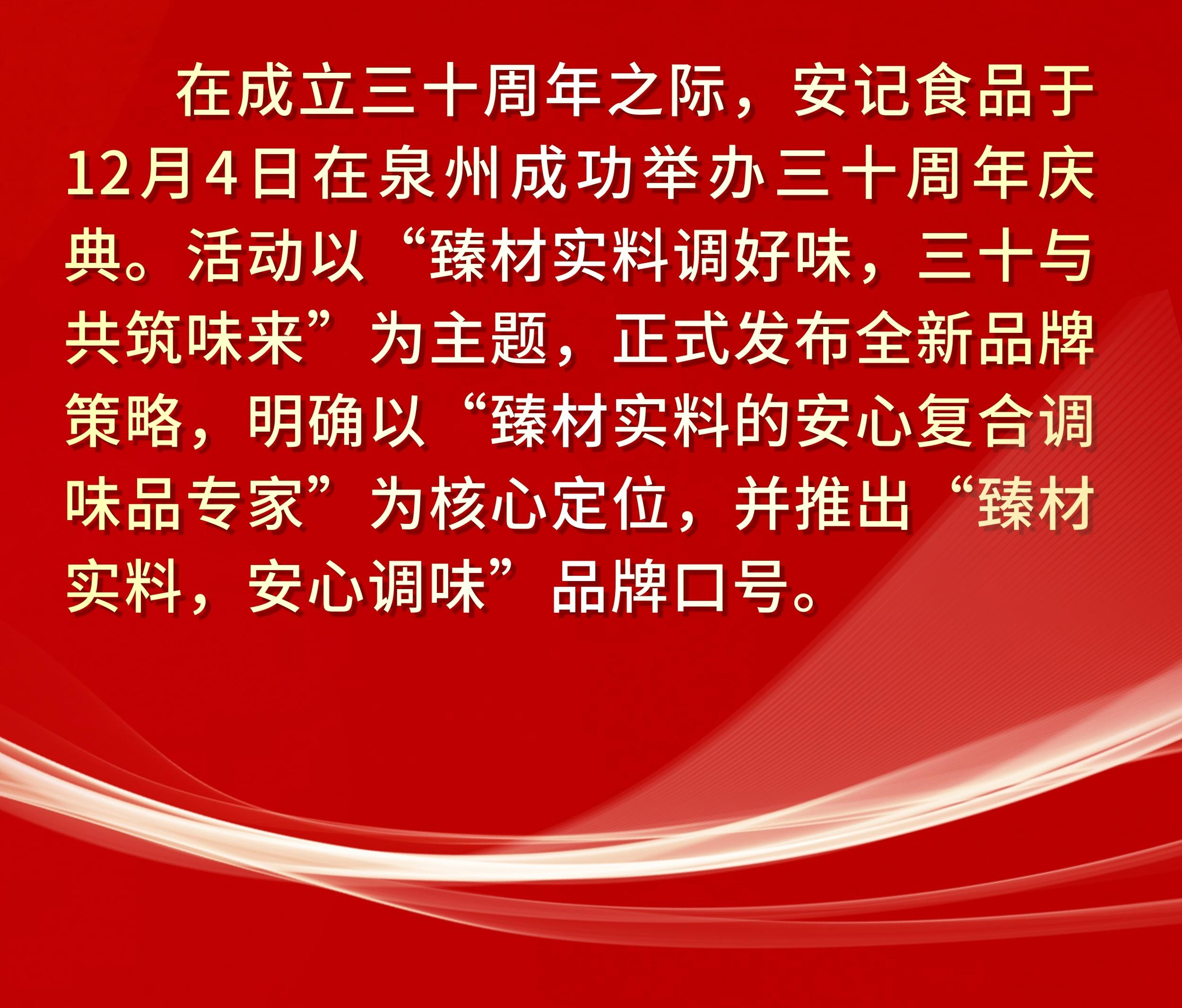 | “臻材實料調(diào)好味,三十與共筑味來”| 安記食品成立30周年暨上市十周年慶典圓滿成功 |